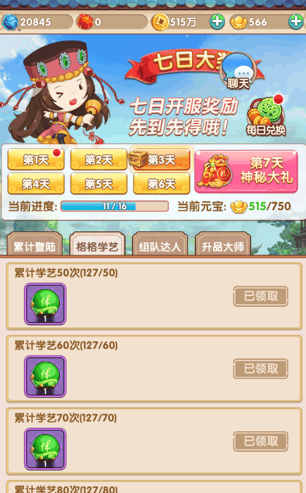 7、开服比拼活动中达到活动要求可以领取体力丹