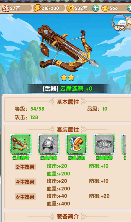 装备分白,绿,蓝,紫,橙五种品质,可以强化与进阶,但今天却不打算说这个,而是说说装备的合成与套装属性!