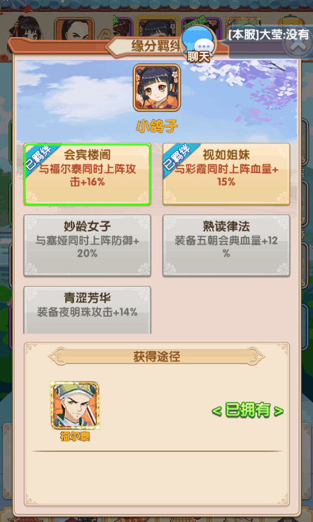 缘分羁绊在游戏里对战力的影响非常大,分为人物羁绊和装备羁绊两种,都是可以增加人物百分比属性的,因此前面也说了,这项的战力加成非常大,只是没有装备什么的那么明显罢了,因此在装备与上阵人物的选择上面,尽量选择有缘分羁绊的比较好~