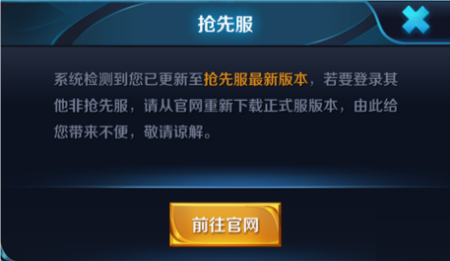 3)更新完成以后,玩家如果退出,就进不去其他区服。需要从官网下载最新的正式服版本。