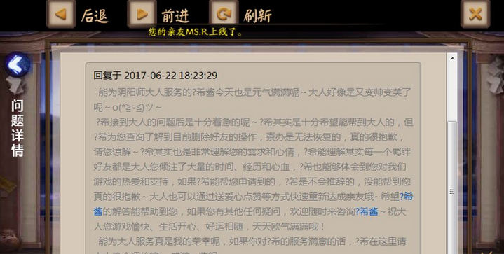 不小心误点了这个,反馈给客服,得到的回复是寮办无法恢复。所以,阴阳师黑名单功能使用要慎重,可能一不小心就删除好友,并且自动清除好友羁绊关系。。