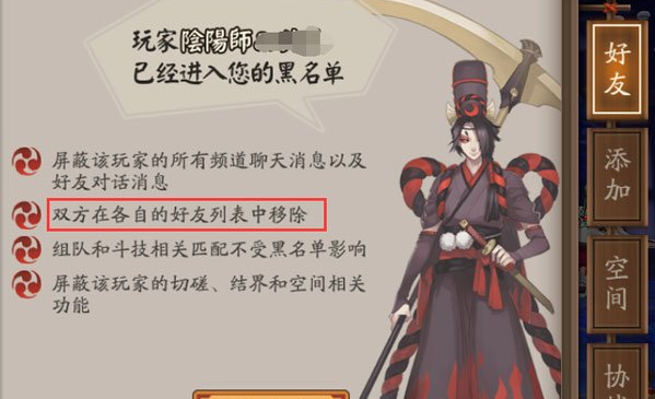阴阳师黑名单功能是游戏最新推出的一款社交优化功能,这款功能主要是免玩家受到游戏中的骚扰,本篇带来使用的注意事项,包括会删除亲友羁绊等。告诉大家正确使用这一功能的方法,希望大家喜欢。