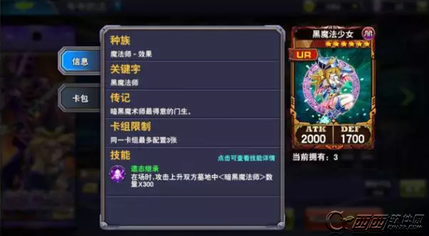 黑魔导阵:可以在每回合抽卡时将卡组前三张中一张有关黑魔法师的卡牌先加入手牌。也就是说如果你的卡组前三张有有关黑魔法师的卡牌,那么你就可以多抽一张牌。召唤暗黑魔法师时破坏对方一张卡牌。推荐卡组中带1张。