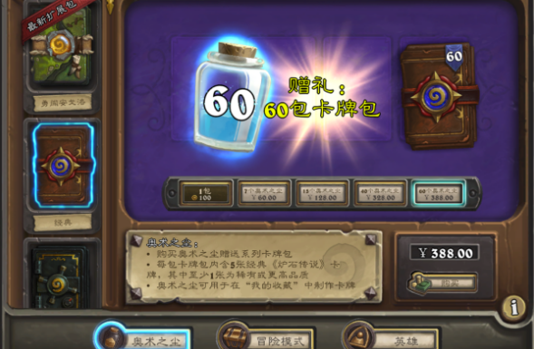 炉石传说6月28日商店卡包改动,商店开始出售奥术之尘了,新增了一个奥术之尘的获得方法,同时炉石传说买奥术之尘送卡包,卡包成附赠物品,西西带来炉石传说买奥术之尘送卡包改动介绍,6月28日卡包改动内容一览,希望对大家有所帮助。