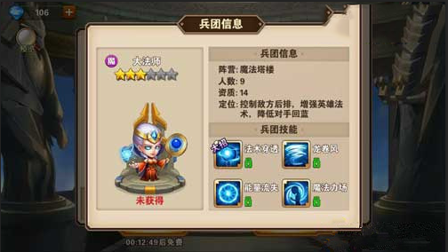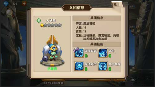 神灯(魔):神灯是魔法塔楼兵团唯一的治疗兵团,她能够给自己和兵团带来防御增益,同时强大的治疗技能也能让团队站得更久。