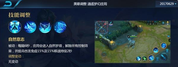 新版本中如果英雄近一个版本有过调整改动,那么该英雄展示界面会出现一个近期调整按钮,点击按钮后会跳转到外部链接,在外部链接的页面上可以查看到该英雄的详细调整内容