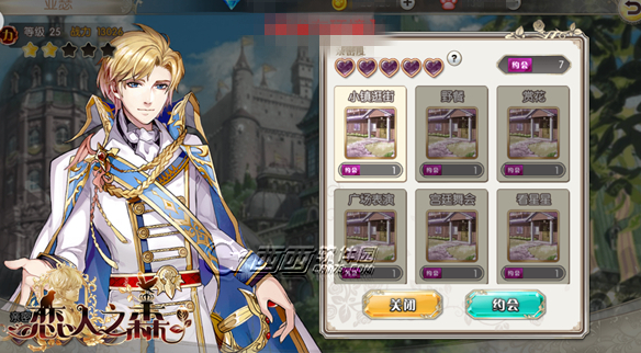 3、最后,常常与你最爱的王子进行约会不仅可以感受属于你们二人世界的浪漫,更能增加亲密值,帮助你早日撩到你的王子殿下!点击约会按钮即可轻松开启你的约会之旅~