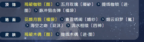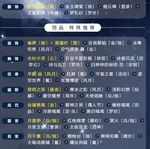 没有图上衣服的小伙伴,试着用配装器补一下 ,选关卡、下方找相应部位、看排序就行有中式古典/现代的饰品,能带多少带多少,进行搭配时善用搜索