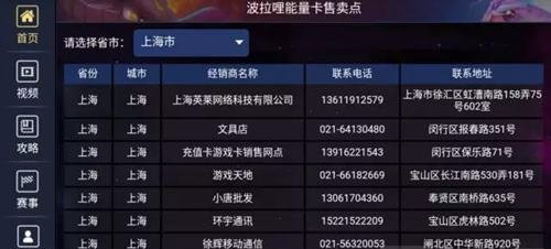2、进入查询页面,你能看到全国所有的线下能量卡售卖点哦!球宝们能自由选择省市查询,地址电话统统都有!贴不贴心,继续夸我!
