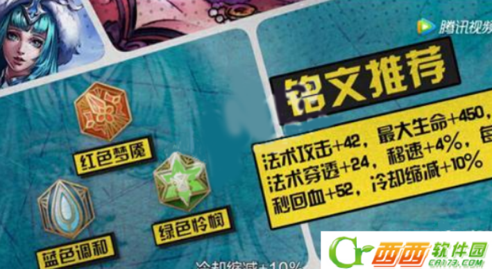 解析:法术攻击和法术穿透,是法师非常需要的AP属性,这套铭文的重点是10%的技能冷却缩减,能让王昭君更多的释放技能,打出更高的伤害和更频繁的控制,同时也能增强自己的防御能力,配合大招打出高额的伤害。