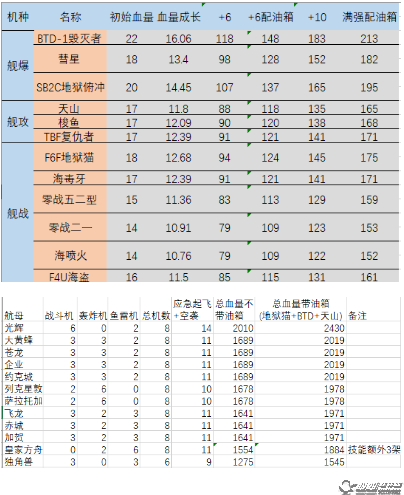 战斗机:地狱猫>海毒牙(主轰炸)=零五二(空优,最快的飞机整备速度,在演习场有奇效)