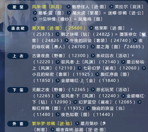 上 衣:花香〔好友〕(13600)> 初云衫·蓝〔抽〕(13225)> 游园趣事〔套装〕(11975)> 娇俏劳模·上〔登录〕(11385)> 风信子〔金/少/抽〕(10850)