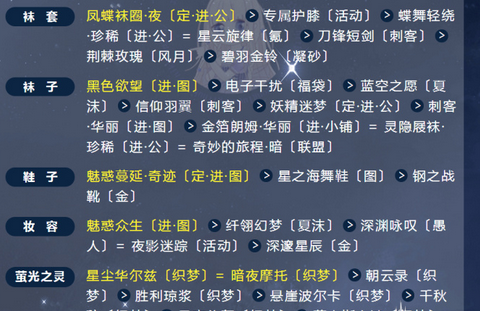 没有图上衣服的小伙伴,试着用配装器补一下 ,选关卡、下方找相应部位、看排序就行有侠客联盟标签的饰品,能带多少带多少,进行搭配时善用标签搜索!今天的(并没有什么用的)猪队友选华丽性感的~
