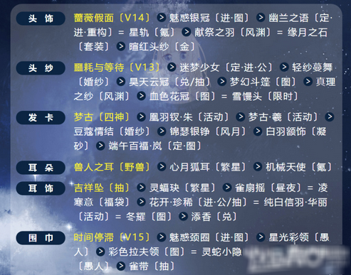 颈饰·围巾:拼色围巾(946钻石)>雪花可可(946迷/幻)>自然馈赠(914金币/迷/幻)