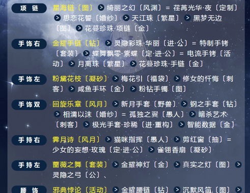手饰·右:柳絮手环(841设)>蝴蝶结飘带·妃(800定)>蝴蝶结飘带(779昼夜)