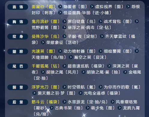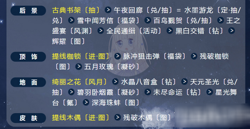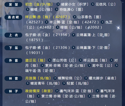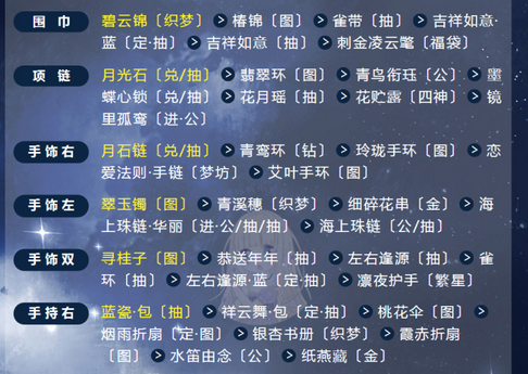 没有图上衣服的小伙伴,试着用配装器补一下 ,选关卡、下方找相应部位、看排序就行有中式古典/现代的饰品,能带多少带多少,进行搭配时善用搜索