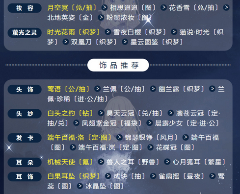 妆容:纯洁天鹅(950设)>纯真天使(948昼夜/兑·时光)>鸳鸯喵瞳(939幻/迷)
