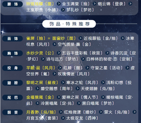 特殊·胸饰:结福连运(872涵光)>首领徽记(752赠送)>斜跨丢丢(748设)