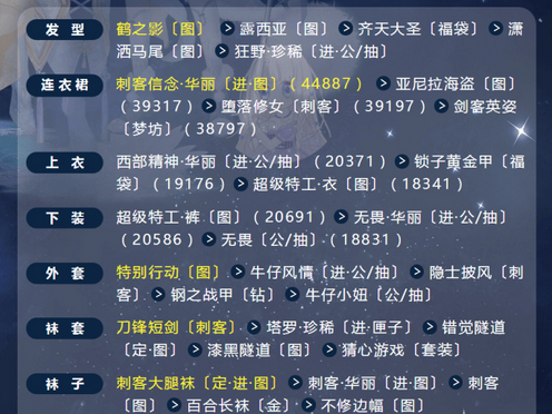 P.S. 因为关卡总分高,所以虽然今天的猪队友更参差了一些,但仍然是影响不大。头发是初恋、雀吟等略好,而云端舞娘、葫芦铃铛串这种虽然tag对了但属性不搭就比较一般;衣服的话中式领子(交领右衽?)的通常比较不错~
