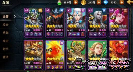 好了 这里所有的地狱兵团都讲完了,我们选了5只部队 烈火精灵 哥格 长角 小恶魔 领主 2防御1攻击2魔法,如果前期没有领主的兄弟也别急,后面我会写个前期替代品。 这5只部队除了领主 难升星以外 其他四个都很好养,兵营的石头分配也很合理 紫的全给长角 绿的以小恶魔为主 多了给哥格 因为哥格已经开服一路保送到了5星,升6星消耗大,先把小恶魔搞起来 平均分配资源。