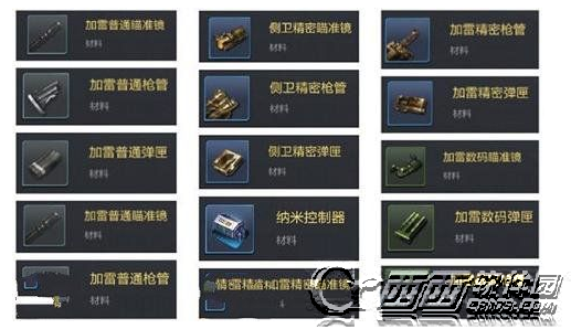 侧位精密系列:侧位精密瞄准镜、侧位精密枪管、侧位精密弹匣等等。