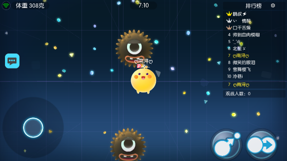 2.就算体积比刺球大,想躲进去刺球也不是难事哦!只要在快要接触到刺球的时候分身,就可以安安全全躲进刺球啦,如果此时背后有敌人追你,搞不好会刹车不及撞刺呢!