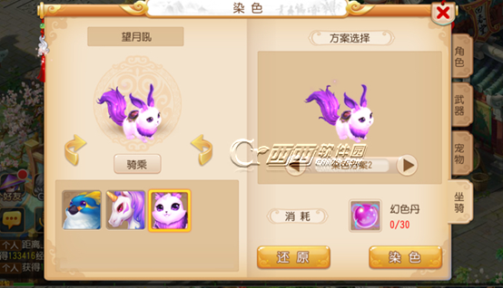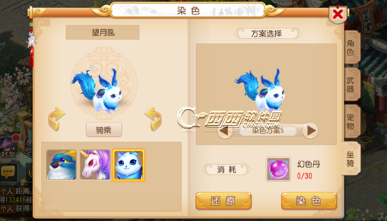 梦幻西游手游望月吼是新增兔子坐骑,目前游戏中望月吼有5中染色方案可以选择,那么梦幻西游手游望月吼染什么颜色好,望月吼染色哪个好看,西西带来梦幻西游手游望月吼染色方案推荐,望月吼染色效果汇总一览,希望对大家有所帮助。