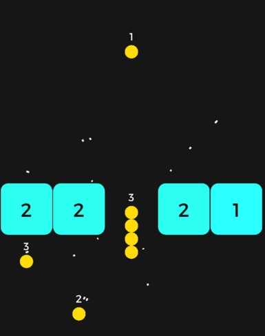 游戏中玩家要左右移动由黄色小球连起来像是蛇的角色并往上前进。角色前面会显示数字,这是代表类似 HP 的数字。关卡中会出现写著数字的黄色小球,只要接触就可以让 HP 增加该数字的份量。