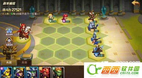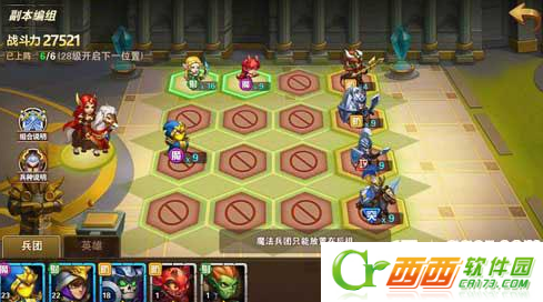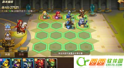 玩家在英雄无敌:战争纪元游戏中可以随心所欲的选择自己所拥有的出击兵团,兵团的搭配要兼备防御、攻击弱点和远程魔法或者远程物理的输出,可见兵团类型的互相搭配是非常讲究的。新手玩家在游戏刚开始的时候可以开启5个兵团位置,能够放置5个兵团参加战斗。另外战斗前还可以调整使用的英雄以及查看到敌方的兵团阵容。