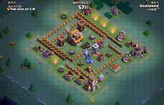 2、在暗夜女巫靠近村庄射程的时候,贴墙下巨人拳击手和战争机器,保护脆弱的暗夜女巫。