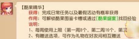 另外另外, 如果因为出去浪而没法每天都完成日常任务, 还是可以通过酷果精华来找回经验哒!