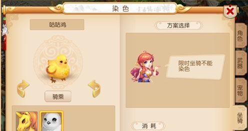 而且限时坐骑咕咕鸡是无法染色的,真可惜......