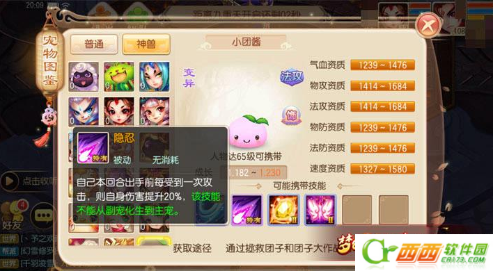 所以个人建议将小团酱打造成隐攻型宠物(满攻击、速度资质的小团酱破坏力还要高于3阶神兽),至于学习的技能推荐如下(隐身技能是必有的):