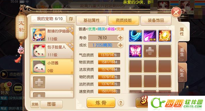 需要注意的是当我们将小团酱兑换出来后其资质并不可观,此时需要我们使用高级返生来刷出想要的资质属性,至于技能方面只要有“隐忍”即可。