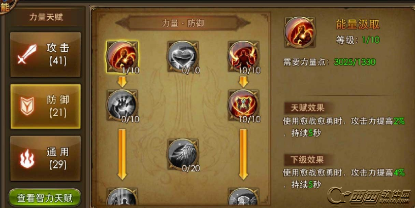 共21点-10点石肤,10点神盾提高格挡值生存能力