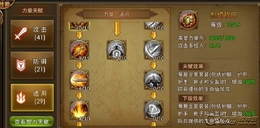 共29点-10点烈焰战甲,9点烈焰之剑,6点燃烧意志,4点蓄力一击