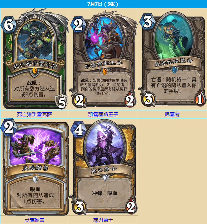 更多新卡7月24日后陆续放出。以下新卡先按时间排序,等卡多了,再按职业来。