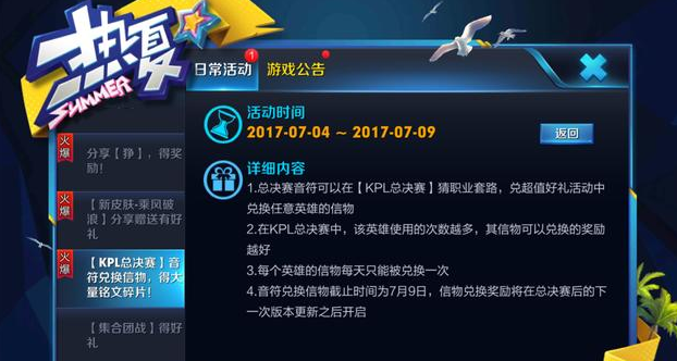 017KPL春季赛总决赛在昨天落下了帷幕,今年最大黑马QGhappy4:0横扫AG超玩会荣膺冠军。游戏中相应的有一些活动和总决赛有关,其中就有用音符兑换英雄信物的活动
