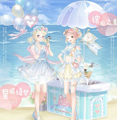 7月12日5:00—7月21日 23:59,完成二选一形式的活动可以获得道具“甜筒冰淇淋”。使用甜筒冰淇淋可以兑换活动套装【星城绮梦】及【缤纷之夏】!