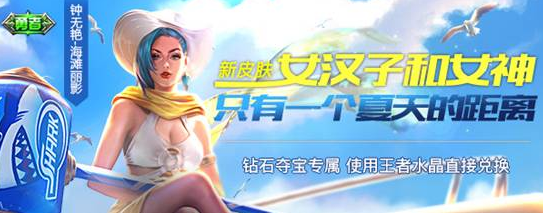 钟无艳-海滩丽影,新皮肤上架钻石夺宝,使用王者水晶直接兑换!