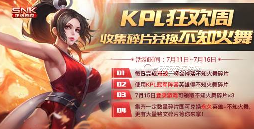 3、7月15日登陆游戏,可领取不知火舞碎片===3个