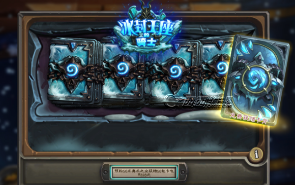 玩家登陆游戏可获得预购赠送的卡牌包和“霜之哀伤”卡牌背面图案。“冰封王座的骑士”卡牌包可在八月份扩展包发布时开启。