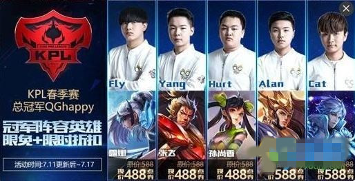 狂欢2:KPL狂欢周,冠军阵容英雄限免+限时折扣!