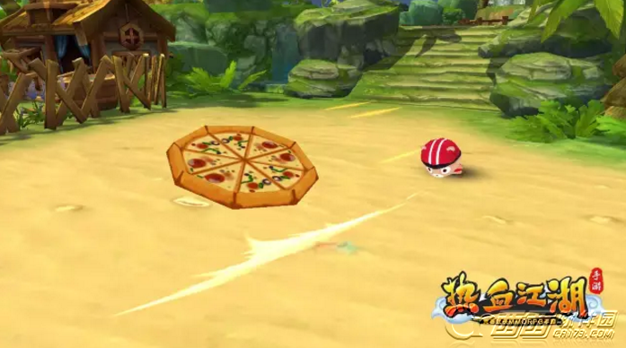 扔出一个披萨,对前方矩形内目标造成伤害,并为周围友方回复怒气