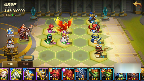 自动战中就还是以保护弓为主,飞马后面放木精灵,旁边位置放弩手,稳中求胜,我在不清楚对方阵型的情况下,一般选择2033布阵,最上路2个突进,第三排凤凰弩手,第四排飞马木精灵,一般情况下对方不会在中间两路放突,即使有也用凤凰去扛住。
