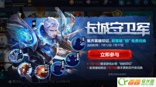 王者荣耀铠的印记活动在哪,王者荣耀7月12日开启了长城守卫军铠的意志活动,集齐7中英雄印记就可以获得新英雄铠,那么王者荣耀铠的印记活动在哪,铠的意志活动怎么进,西西带来王者荣耀铠的意志活动入口介绍,希望对大家有所帮助。