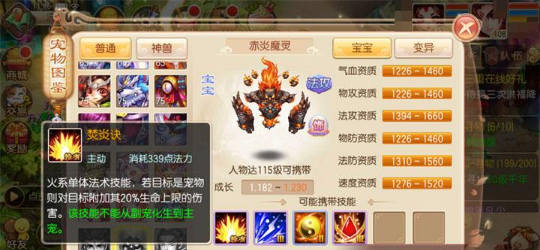 培养须知:要论在竞技场中的实用性,法攻型肯定不如血耐型效果好,如果小伙伴不缺群法宠的话还是将其培养宠血耐宠会更好一些,毕竟天生技能“焚炎决”不需要攻击支持就可对血耐宠物造成可观伤害。