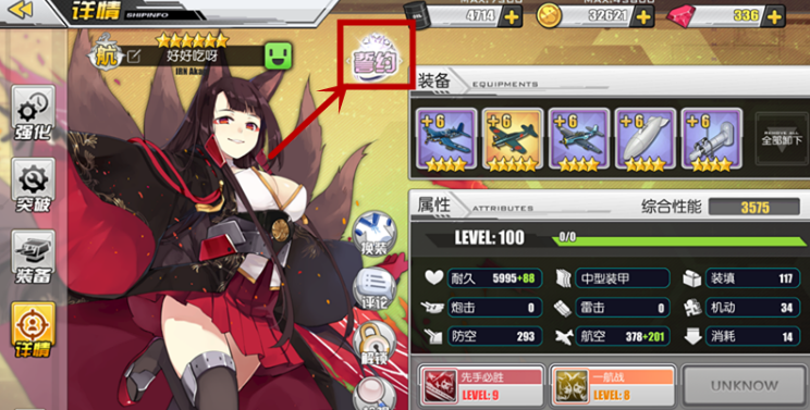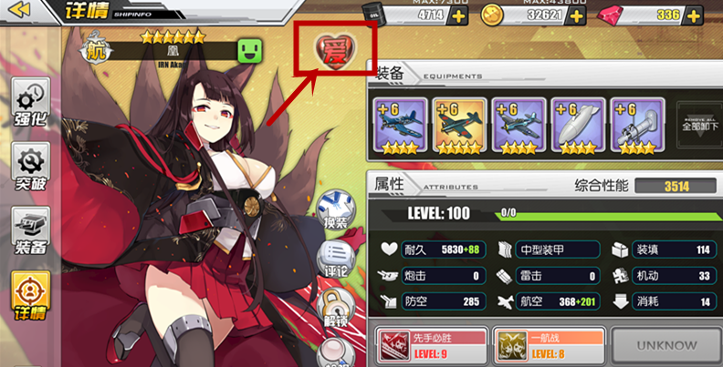 1.找到任意好感度满额的舰娘,也就是舰娘详情界面显示“爱”的界面,点击“爱”