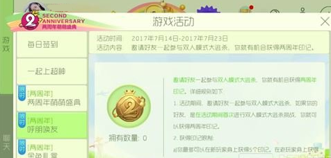 1、活动期间,邀请好友一起参与双人模式大逃杀,如果你的好友,是在活动期间首次进行双人模式大逃杀,你就可以获得两周年印记;