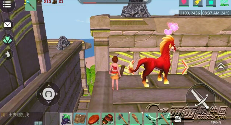 坐骑:用木棒打晕,然后喂他们喜欢吃的食物,等到动物头顶出现爱心图案,即可用马鞍捕获。